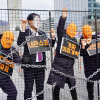 발언자들껜 정품! 민주노총 투쟁머리띠를 드립니다.